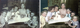 Restoration and colorisation of a Christmas photograph (c. 1956)
